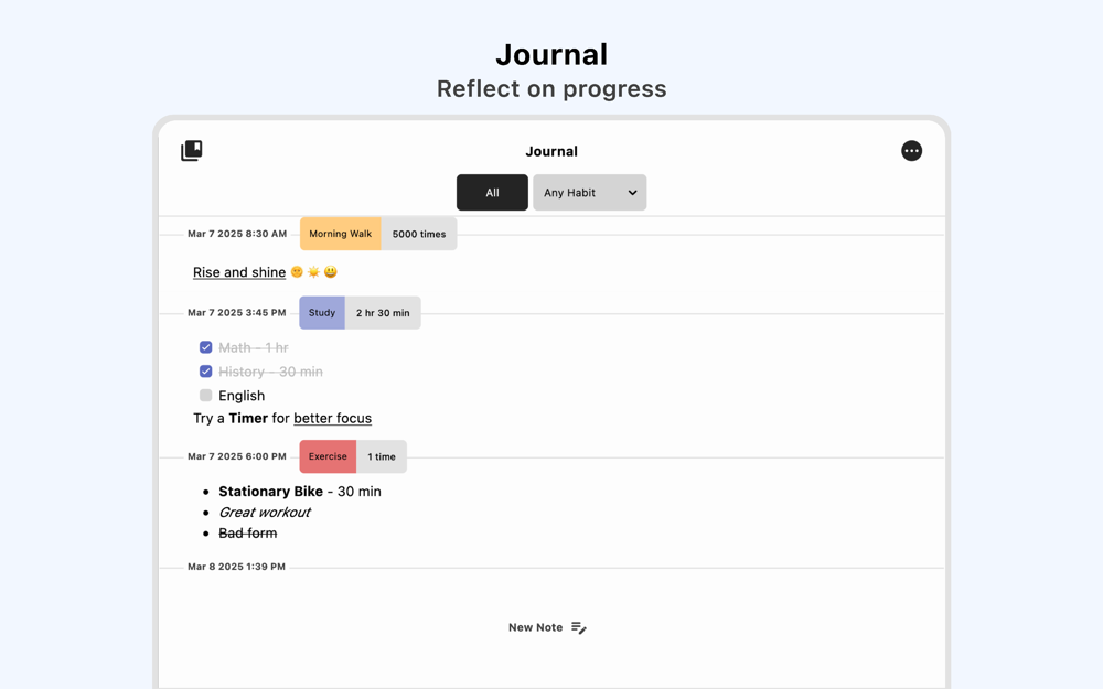 Centralized View: Access habit activity and notes in one place for easy reference.