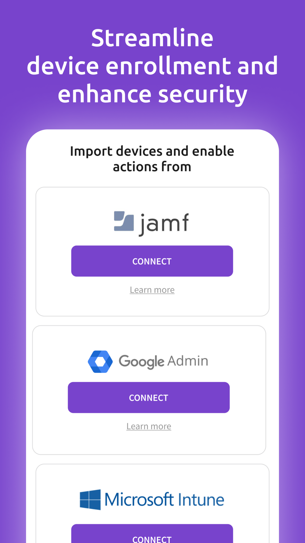 • Integrates with MDMs ( Jamf, Intune, Cisco Meraki Systems Manager )