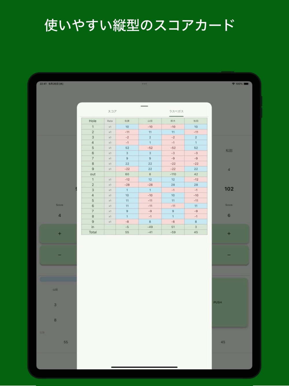 いつも通りスコアを入力するだけでラスベガスの計算をします。