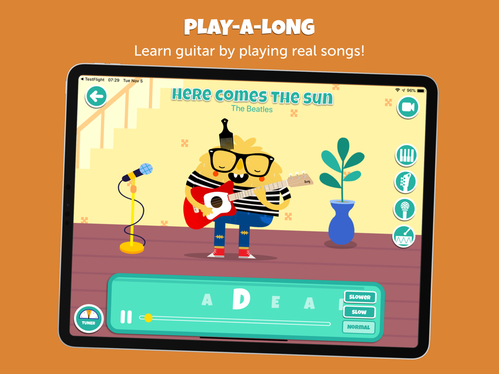 The Loog Guitar app not only includes a tuner, but it comes with a friendly little monster that teaches you how to use it.
