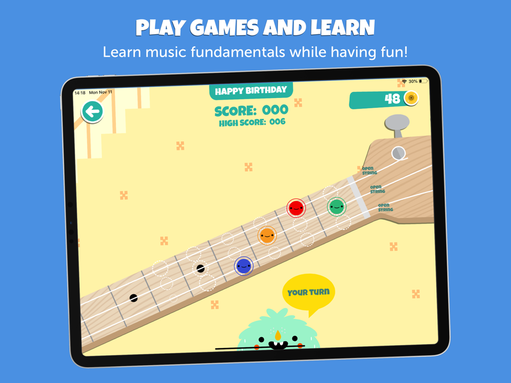 The Loog Guitar app was designed with children in mind, and that’s why we structured it as a games in which little monsters help kids form chords, those chords unlock songs, and those songs unlock a whole new world of awesome :)