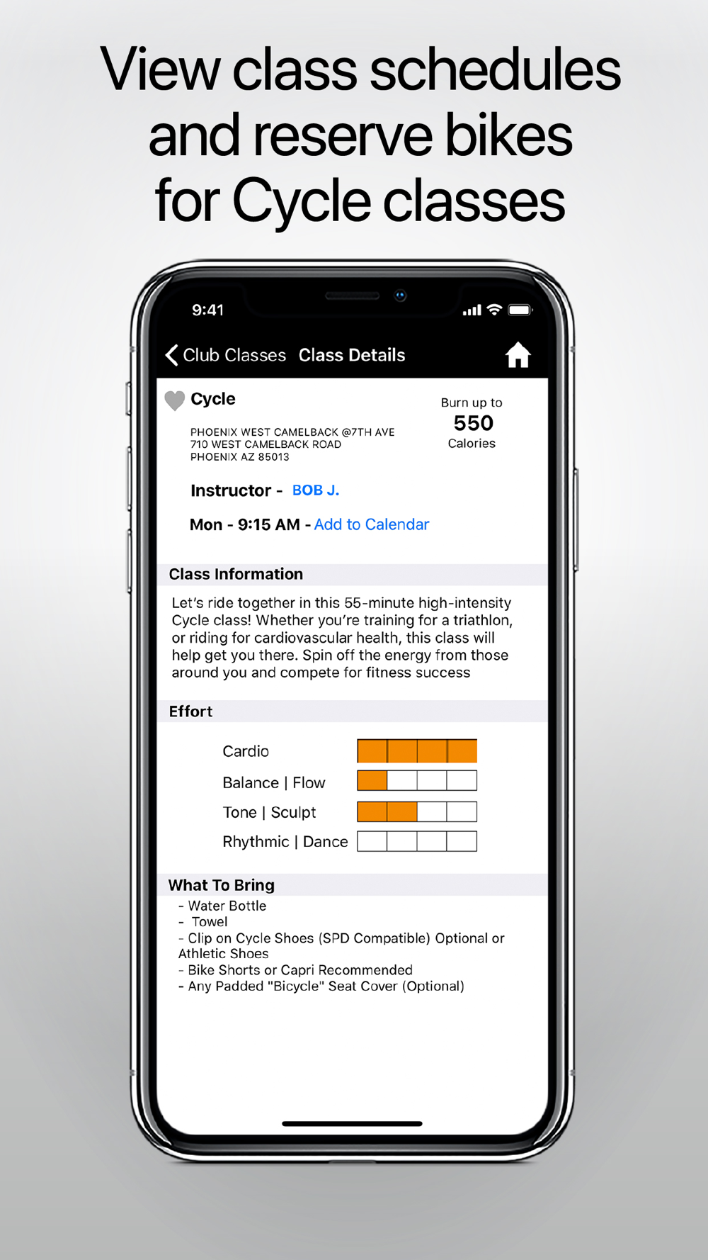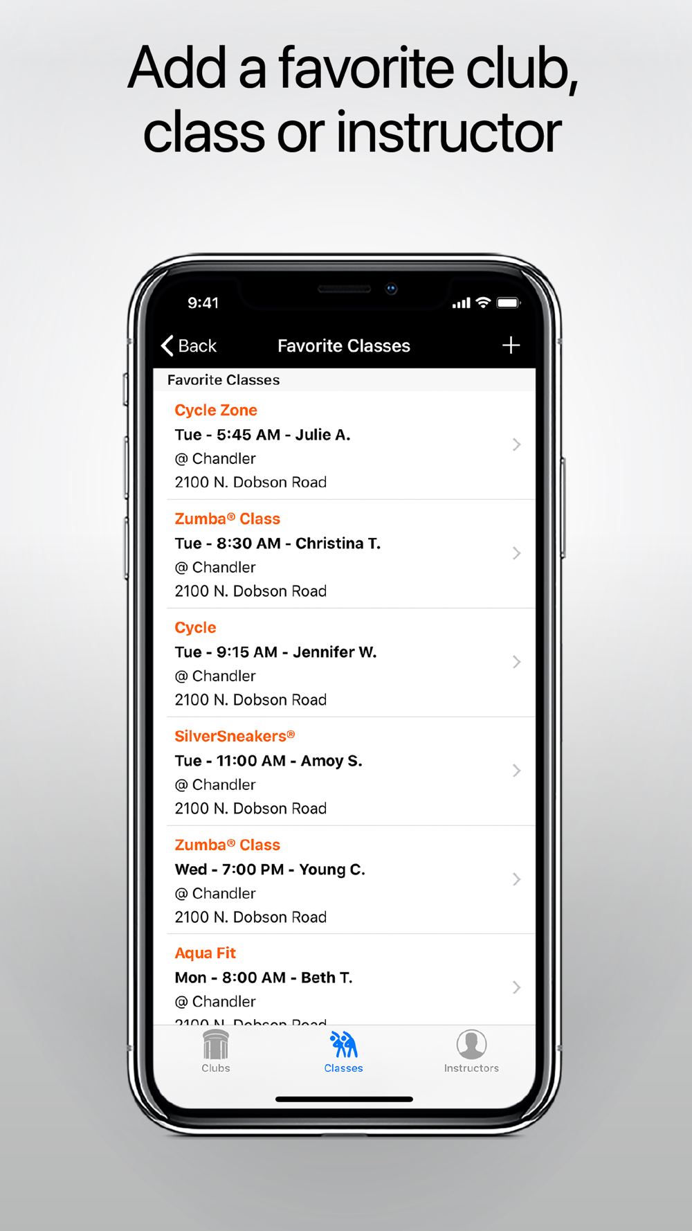 - Create quick access to your Favorite Clubs, Classes, and Instructors