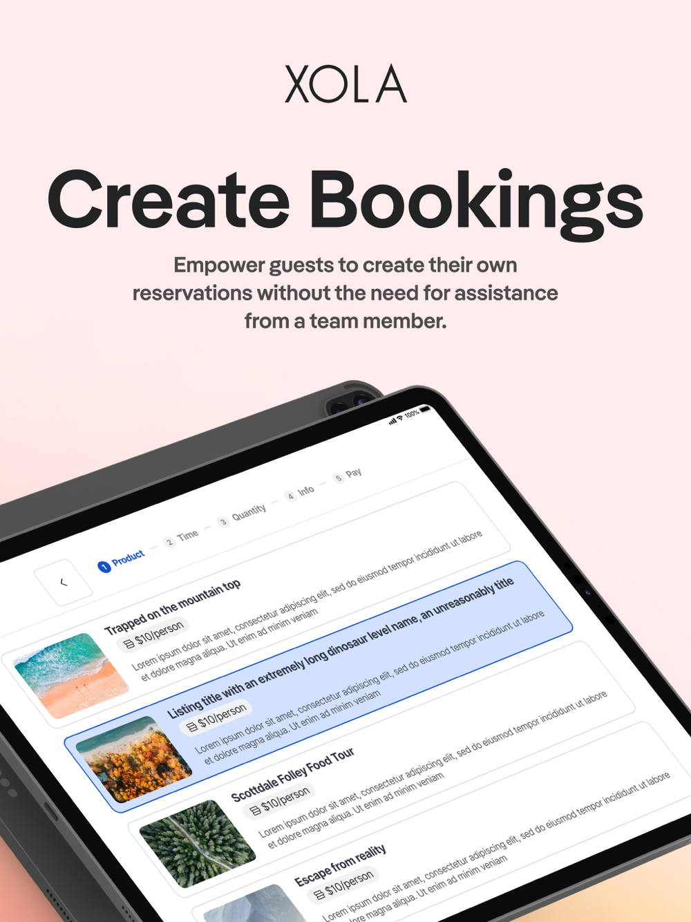 * Guest self serve booking - Allow guests to book in seconds directly on the Xola Kiosk