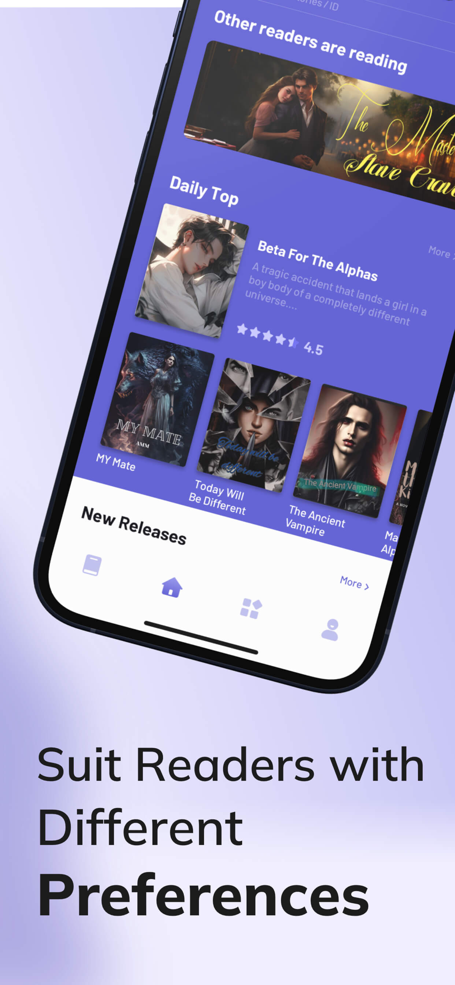 “Violets” features an elegantly designed user interface that seamlessly fuses cutting-edge recommendation algorithms with a user-friendly experience. We have streamlined the registration and login process, ensuring you are quickly immersed in reading. Discover unexpected benefits with features like the rewards page, where you can enjoy getting bonuses by completing tasks in our app.