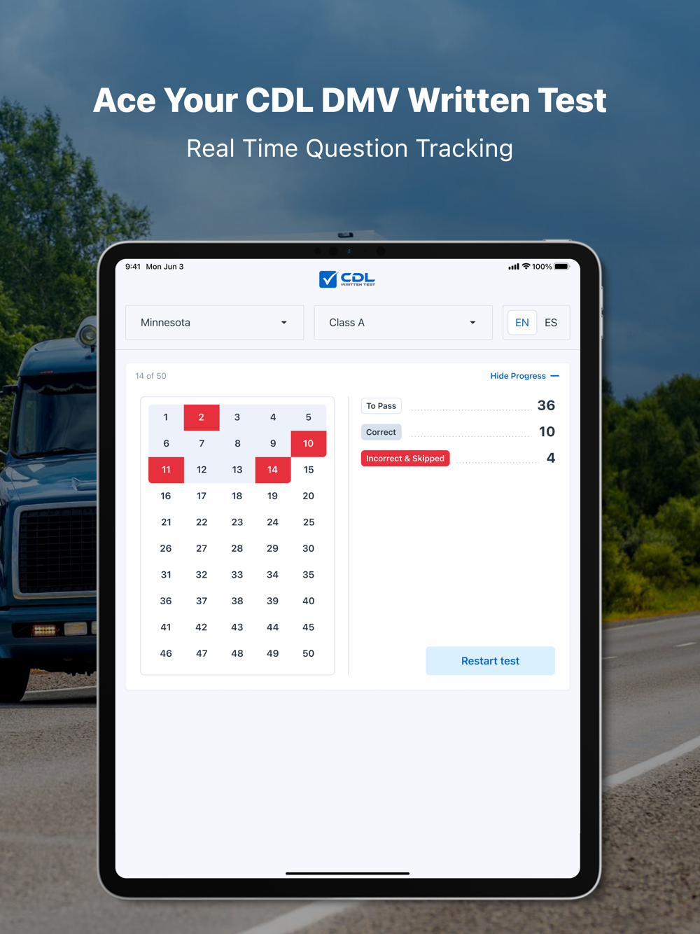 - **Nationwide Coverage:** Prepare effectively with state-specific tests, from the Nebraska CDL practice test to the Pennsylvania hazmat test.