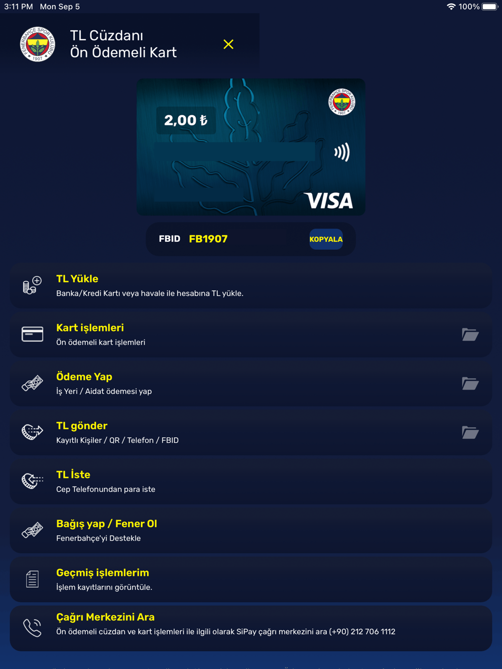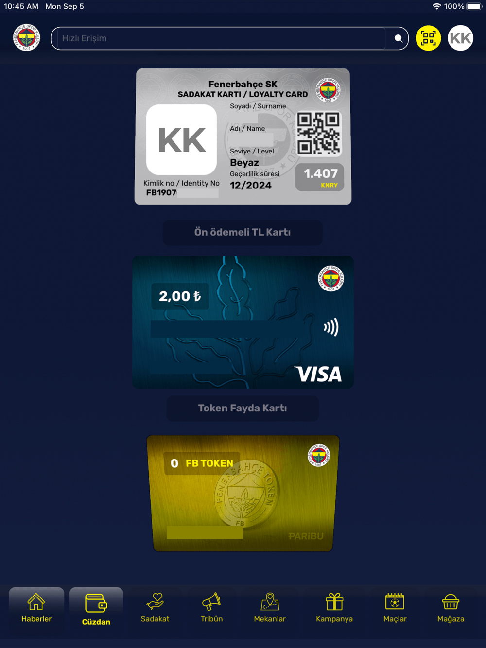 Cüzdan bölümünde işyeri ve aidat ödemelerini kolaylıkla halledebilir; Fener Ol diyerek kulübüne destek olabilirsin. Ayrıca hesaplar arası TL gönderimi yapabilir; TL isteyebilir ve TL gönderebilirsin. Uygulama içerisinde FB Token kartını aktifleştirerek sana özel faydalardan yararlanabilir; daha önce deneyimlemediğin faydalarla karşılaşabilirsin.