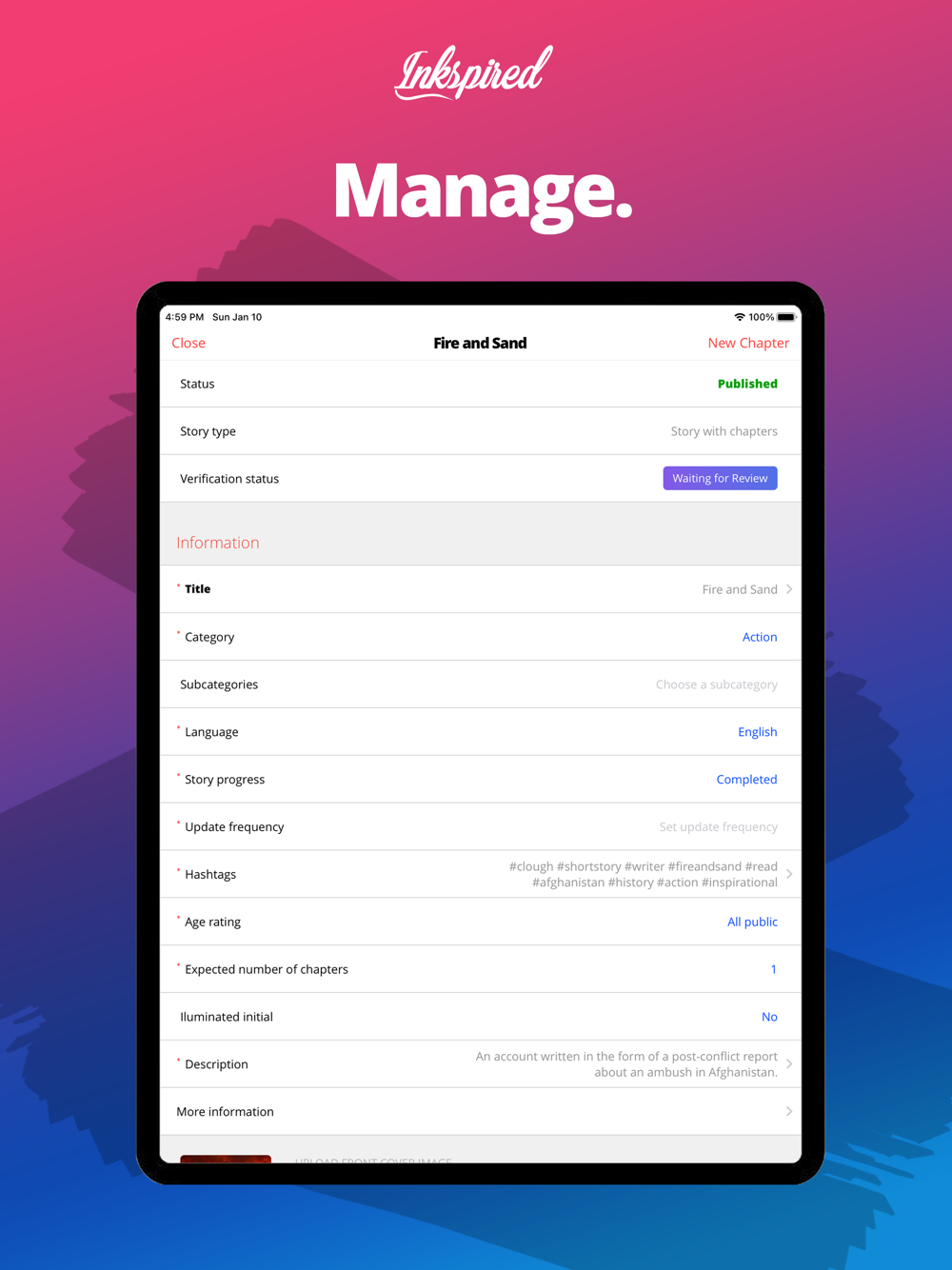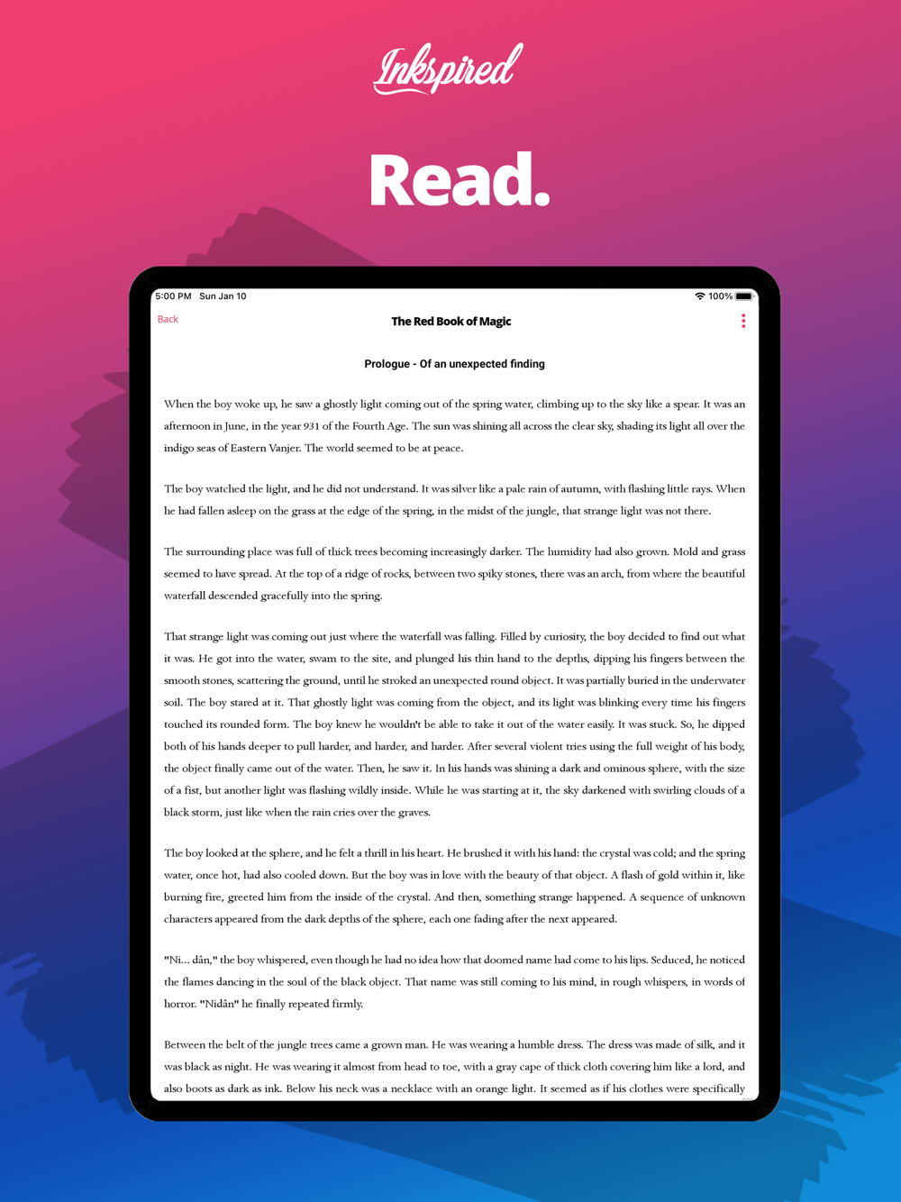 Inkspired is a platform for readers, creators, and authors to discover, write, and publish creative stories and book series for free.