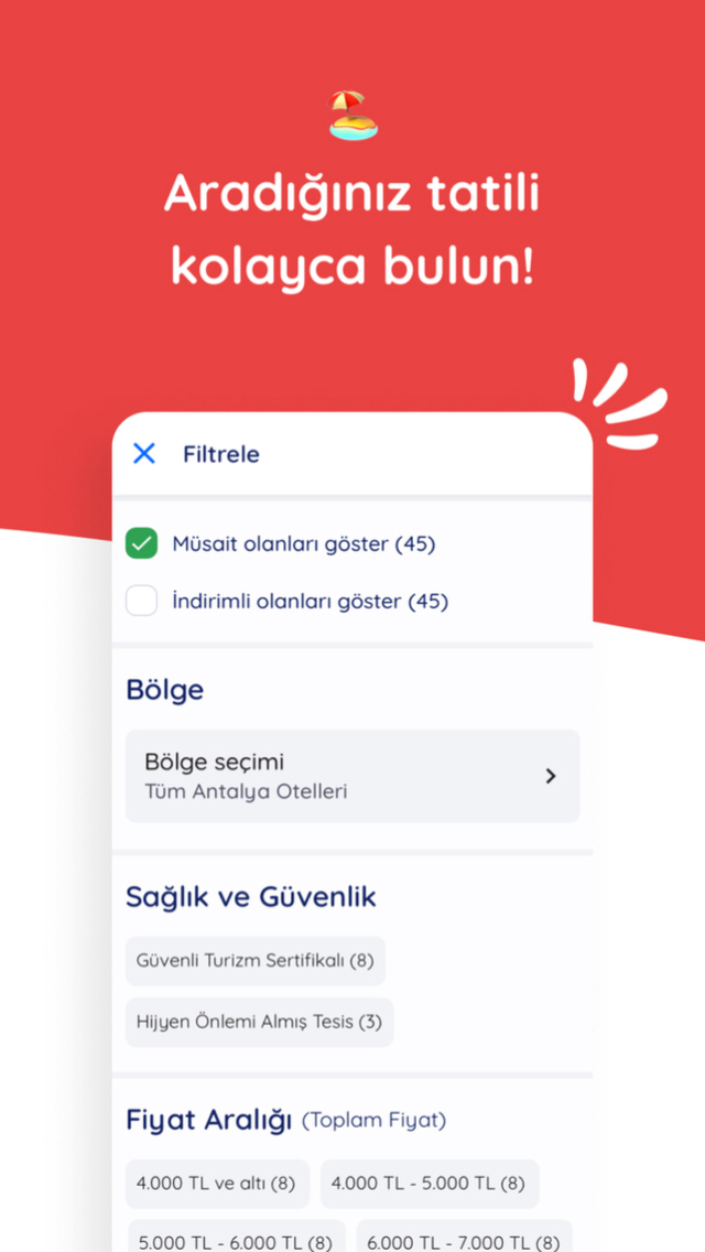 - Filtreleme, kategori ve sıralama özellikleriyle tercihlerinizi kolaylıkla inceleyebilir,