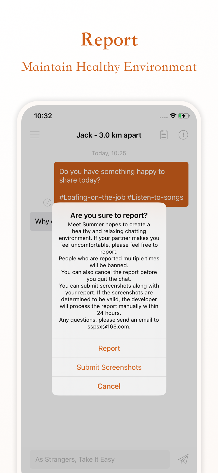 - Machine and human double reporting mechanism, help you maintain a healthy and polite chat environment.