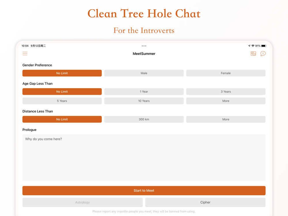 So this is the reason why MeetSummer app was born. I hope it is a truly belonging app for people with social anxiety. I hope it can create an environment that makes you feel relaxed and comfortable, and help you find truly compatible people with as little exposure of external conditions as possible.