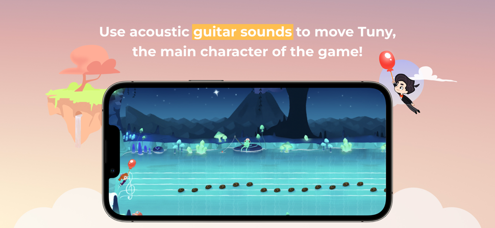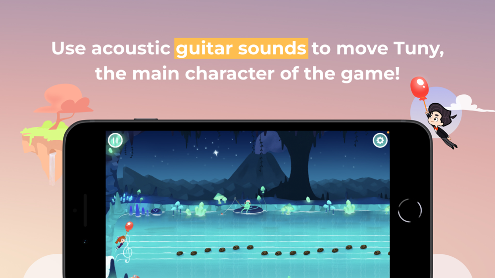 - The guitar is now your game-controller: play sounds and Tuny will move accordingly