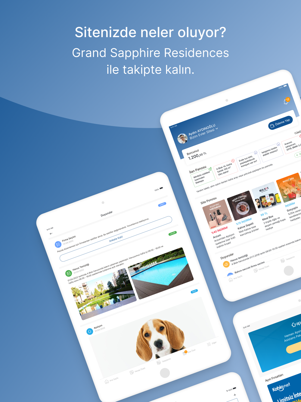 Grand Sapphire Residences Yönetim mobil sayesinde siteye ve üye olduğunuz dairelerinize ait tüm gelir giderlerinizi dilediğiniz anda görebileceksiniz.