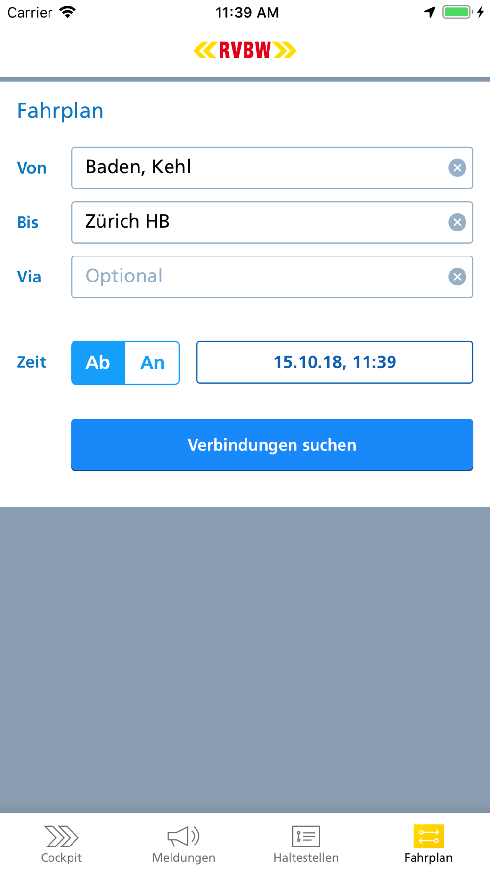 Mit der App der Regionalen Verkehrsbetriebe Baden-Wettingen sehen Sie auf einen Blick alle Abfahrten in Echtzeit ab einer Haltestelle im Liniennetz der RVBW. Während der Fahrt mit einem Bus der RVBW sehen Sie automatisch den aktuellen Kurs inklusive den Ankunftzeiten an den jeweiligen Haltestellen. Neben den Informationen zu den Fahrten bietet Ihnen die App auch Zugriff auf die aktuellen Betriebsmeldungen. Sie können ebenfalls pro Linie einstellen, ob Sie eine Meldung als Push Notification erhalten möchten.
