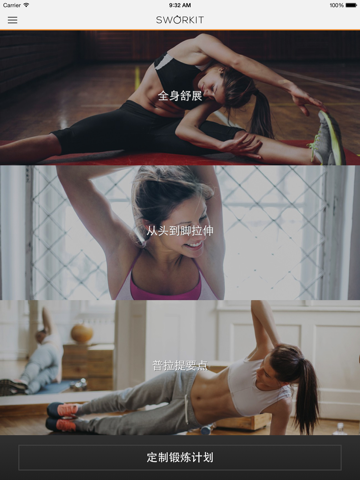 拉伸 Sworkit应用程序提供三个独特的锻炼项目: