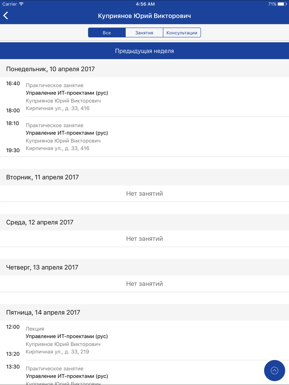 Мобильное приложение позволяет просматривать расписание занятий НИУ ВШЭ.