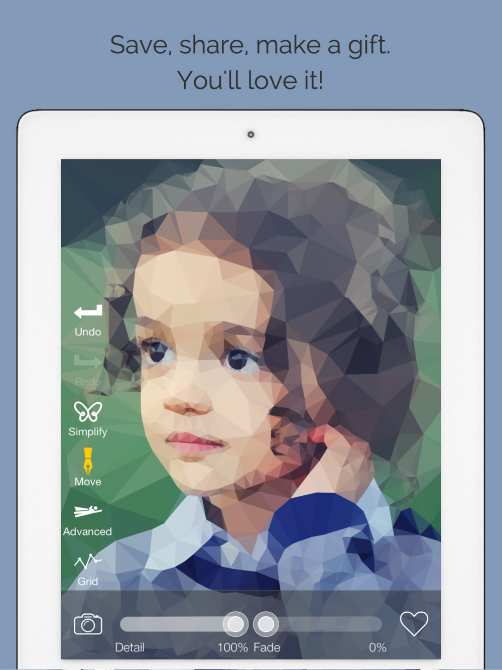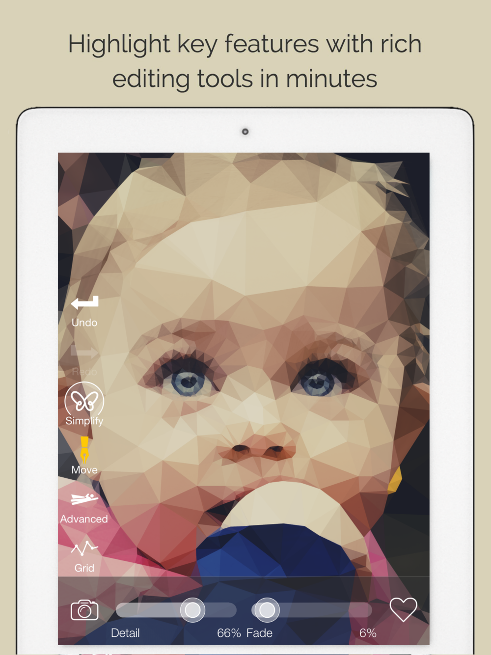 + Adjustable Fade Slider to show your preferred blend of triangles and original image.