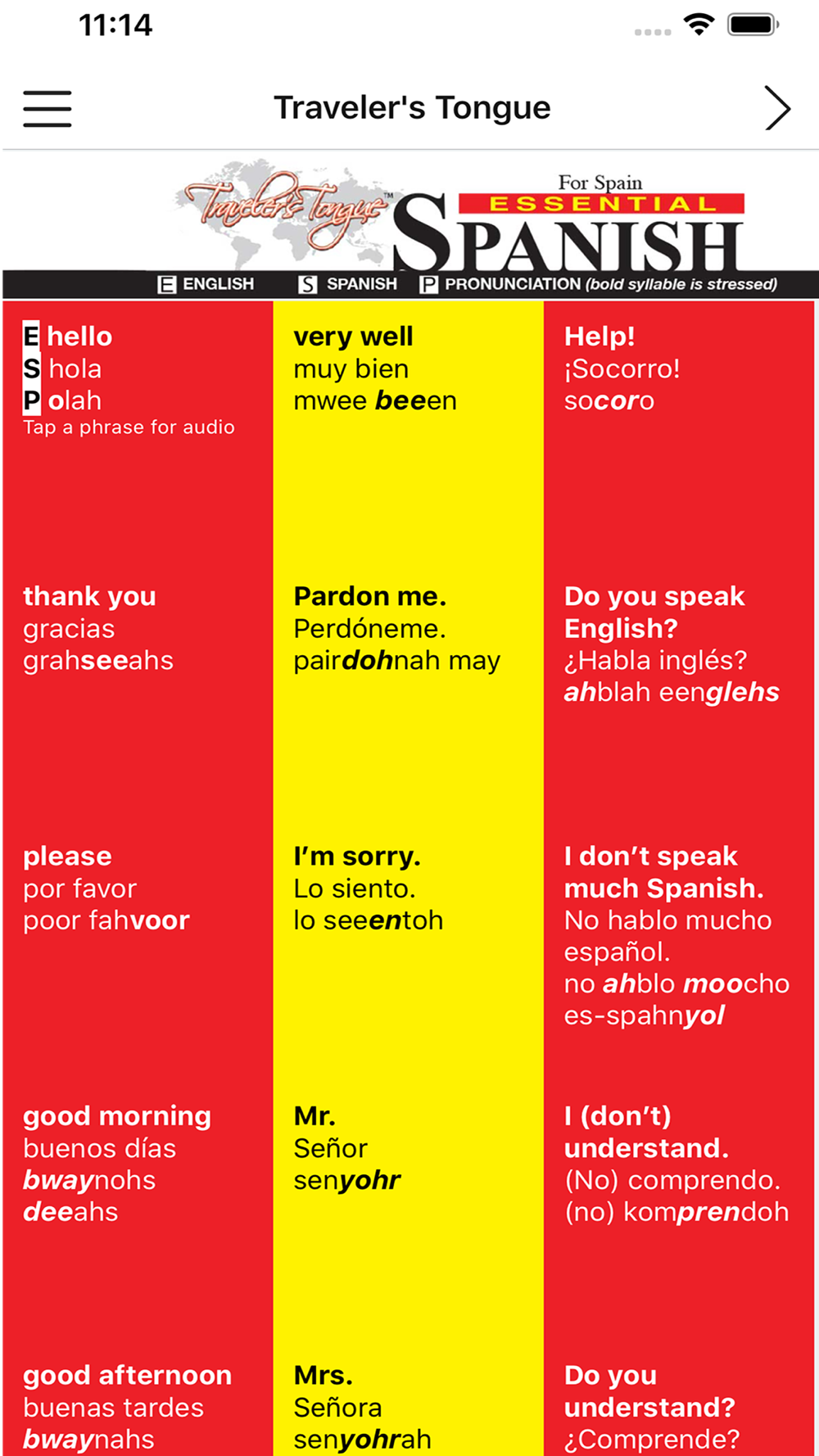 When we travel to a foreign country we are demonstrating an interest in that culture. Speaking a little of the native language is part of the cultural experience. There are many Applications and phrase books on the market that offer far more words and phrases, and they are excellent reference sources. However, Traveler’s Tongue provides the most essential and practical words and phrases. They are meant to be learned because you will have an opportunity to use them often. Each entry provides a written phonetic spelling of the word as well as an auditory function.