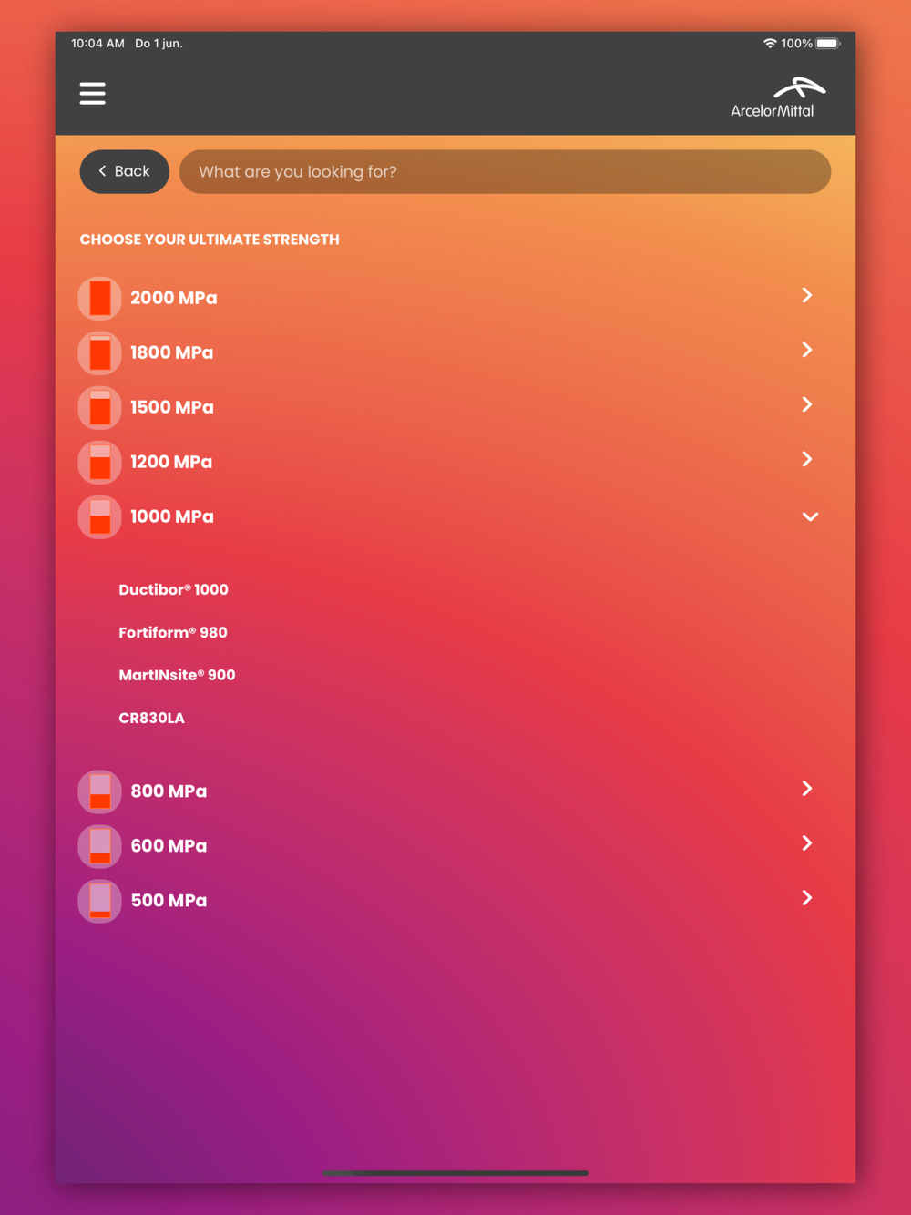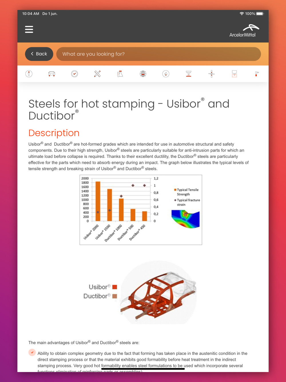 ArcelorMittal’s interactive Automotive app puts our database of steels and coatings at your fingertips. It’s the ideal app for carmakers, Tier-1 suppliers, engineers, automotive designers, researchers and students.