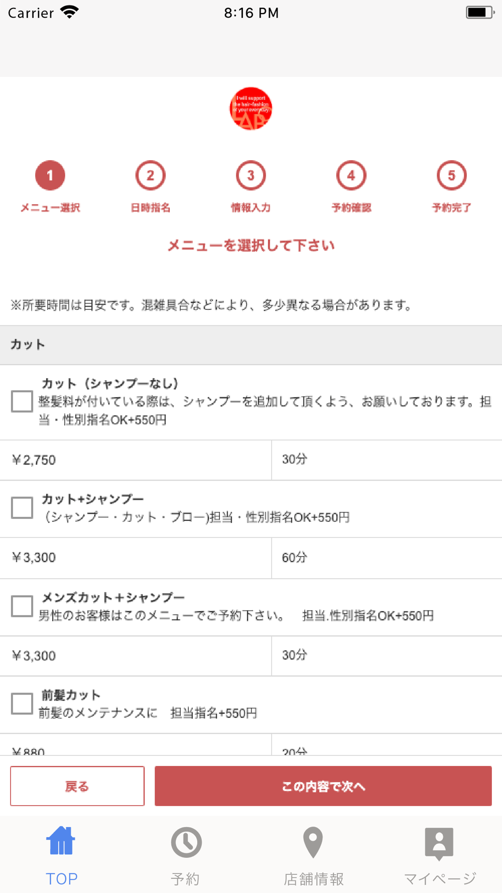 予約状況の確認やキャンセルがマイページ上から行えます。スタッフの登録が出来るので前もって担当者を登録しておけばマイページからスムーズな指名予約が可能です。又、マイページにお気に入りのヘアカタログを登録出来るので来店時に画像を見せるだけでイメージを伝えることが出来るので安心です。