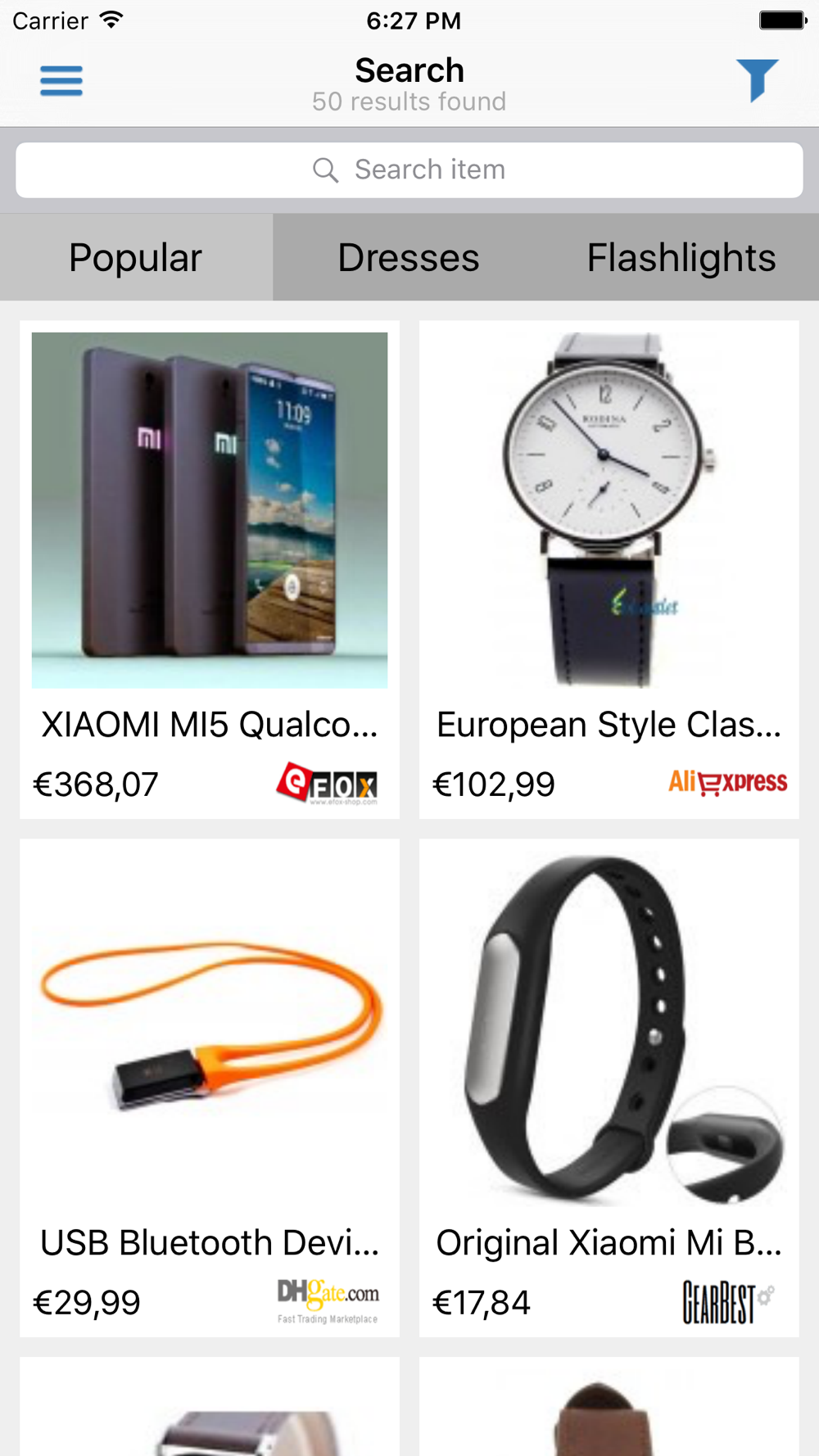 We're currently searching through 112 legit Chinese online shops at once. With our powerful filters you can exclude shops, select for example only shops which offer PayPal payment or order your search results by relevance.
