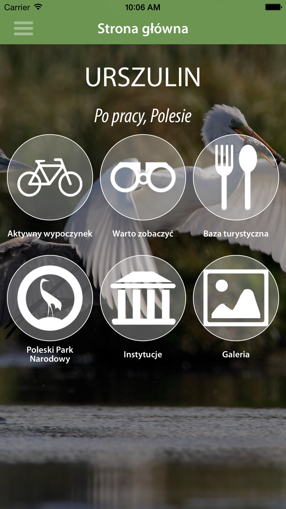 Aplikacja mobilna Urszulin, po pracy Polesie to przewodnik turystyczny po pięknej i zacisznej gminie Urszulin oraz po Poleskim Parku Narodowym. W aplikacji znajdują się szczegółowe informacje oraz przebieg szlaków turystycznych, ścieżek przyrodniczych, tras rowerowych oraz nordic walking. W aplikacji zostały zamieszczone informacje na temat walorów przyrodniczych, pięknych jezior oraz ciekawych obiektów turystycznych, które warto zobaczyć wybierając się do Poleskiego Parku Narodowego oraz Gminy Urszulin. W trakcie zwiedzania turyści mają możliwość skorzystania z dodatkowej infrastruktury tj. wież widokowych oraz zadaszeń, w których mogą odpocząć. Dzięki aplikacji mobilnej użytkownik może zaczerpnąć ciekawej wiedzy na temat Parku i jego ekosystemów, fauny, flory oraz gatunków chronionych występujących na jego obszarze. Aplikacja umożliwia nie tylko przeczytanie informacji, ale również odtworzenie dźwięków ptaków, które możemy spotkać na szlakach turystycznych oraz ścieżkach przyrodniczych. Dla turystów planujących dłuższy wypoczynek została przygotowana baza turystyczna z ofertami noclegowymi, gastronomicznymi itp. które ułatwią zaplanowanie pobytu na Polesiu. Dodatkowo dzięki aplikacji możemy skorzystać z udogodnień takich jak nawigacji GPS, planer zwiedzania czy lektora głosowego. Aplikacja zawiera materiały, dźwięki oraz piękne zdjęcia, które stanowią jedynie namiastkę uroku tego miejsca, miejsca do którego warto wyruszyć z każdego zakątka Polski aby choć na chwilę zwolnić tempo i upajać się bliskością przyrody, która nas otacza.