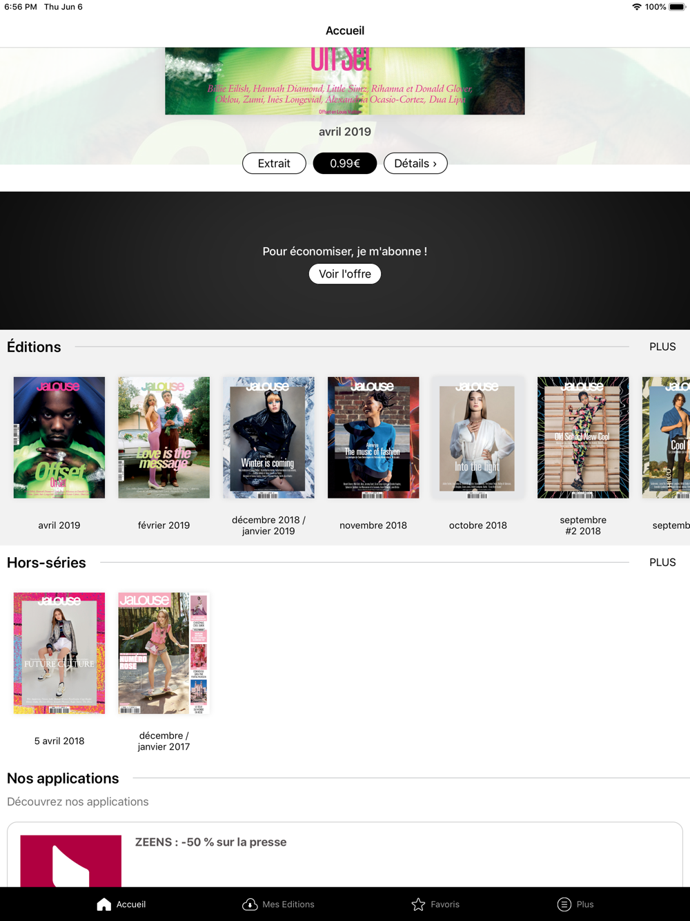 L’application Jalouse vous propose une version numérique enrichie de l'édition papier du magazine Jalouse.