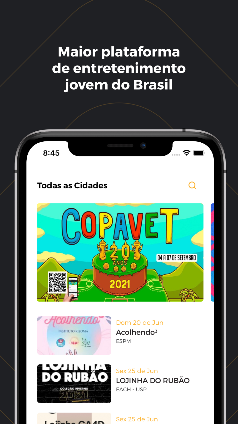 • Seguir suas entidades / produtoras favoritas e receber notificações sobre: novos eventos, promoções…