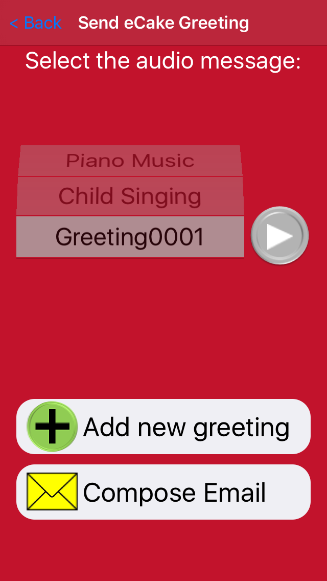 You can change the music or record your own personalised greeting. Press the email icon to send a friend or family member an eCake with your recorded greeting.