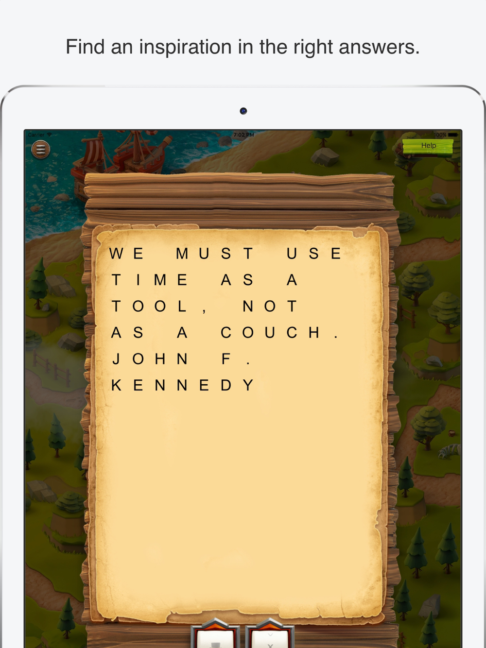 Everything begins from the 1st and the easiest level, short quotes where you'll be showing off your genius: "Piece of cake! I can solve it with my eyes closed!" to the 21st where everything is encrypted, including spaces (!).