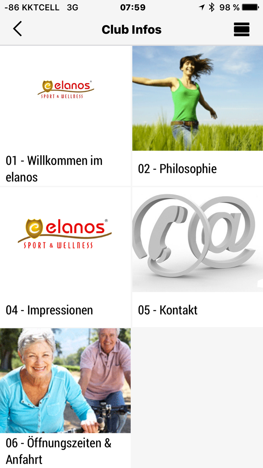 Informationen wie Öffnungszeiten, Kontaktdaten, Studiofotos und Trainingstipps sind griffbereit und können sofort per E-Mail zu Freunden geschickt werden.
