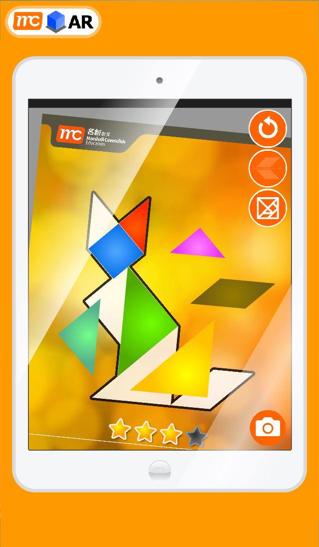 在這個 AR app中,學生可利用虛擬七巧板,在不同的挑戰圖卡上拼砌出指定的圖畫。學生需思索如何透過移動、轉動或反轉七片碎塊來完成遊戲。這個拼砌圖形遊戲可訓練學生擴散性思考,從而發揮個人創造的潛能。初級者更可按照提示拼砌,以掌握簡單幾何圖形的基本特性。