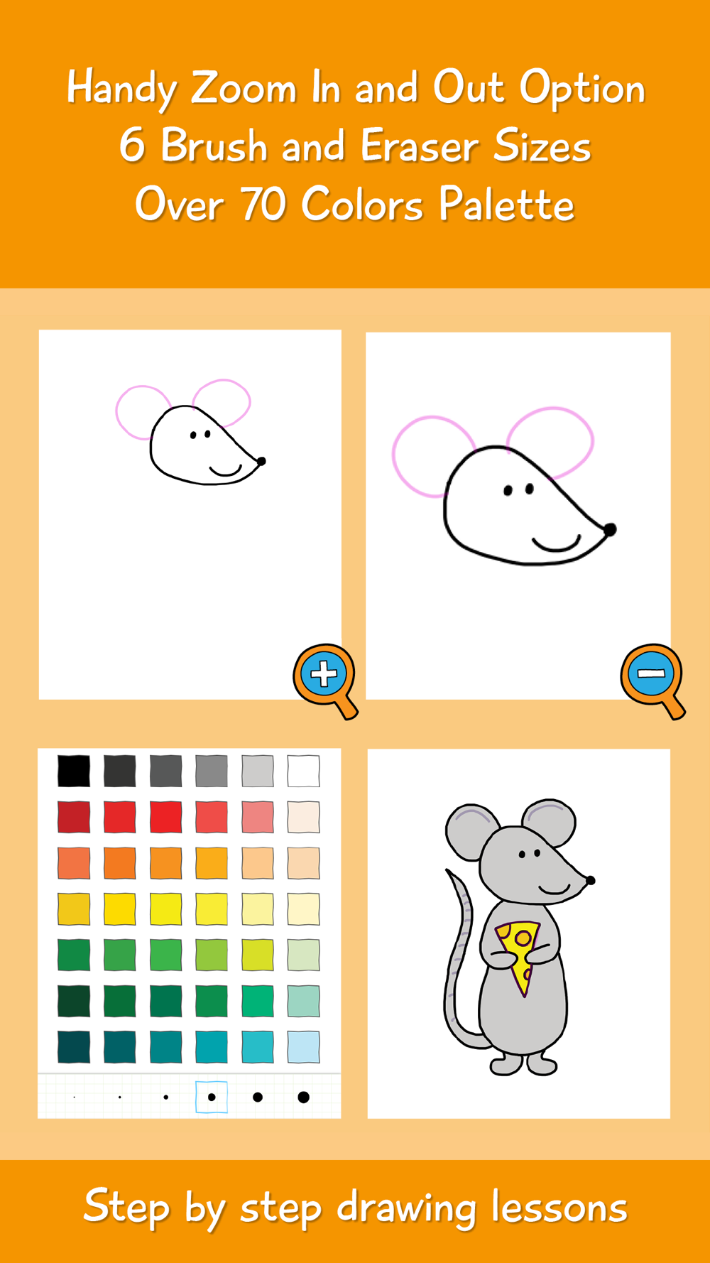 ● Handy drawing tools: a brush and an eraser with 6 sizes to choose from