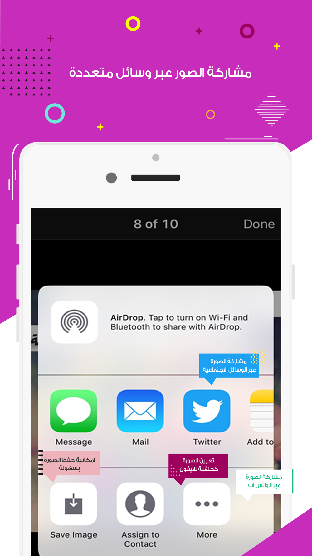 - امكانية مشاركة الصور عبر الوسائل الاجتماعية