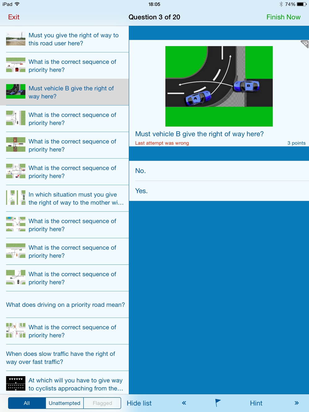 Suitable for both Car and Motorcycle tests. Includes 1,549 questions & explanations from all three topics: general rules, traffic situations & traffic signs/road markings.