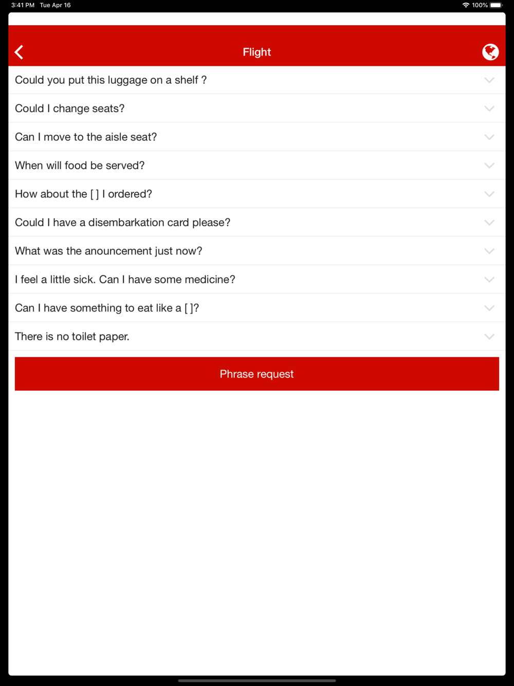 With the tap of a button the app gives you the translation and pronunciation of whichever phrase you need.