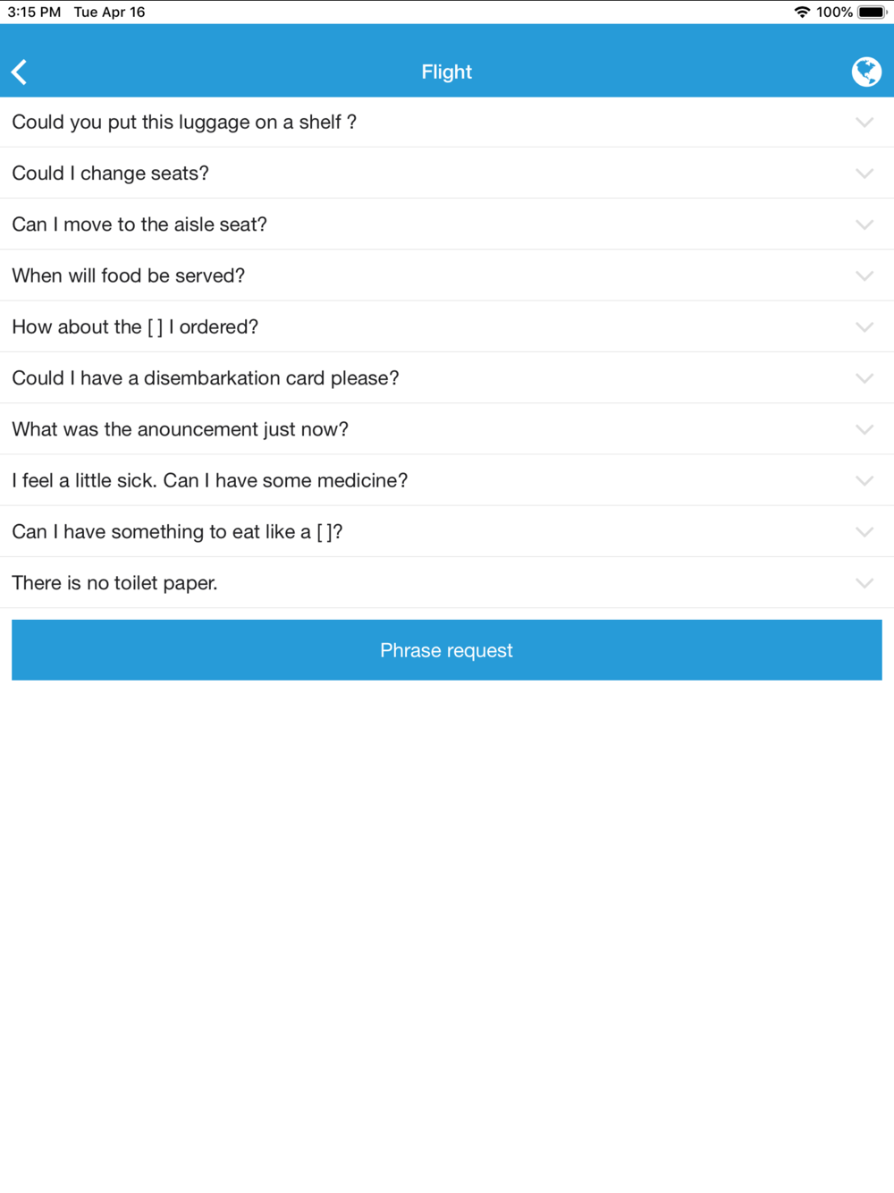 With the tap of a button the app gives you the translation and pronunciation of whichever phrase you need.