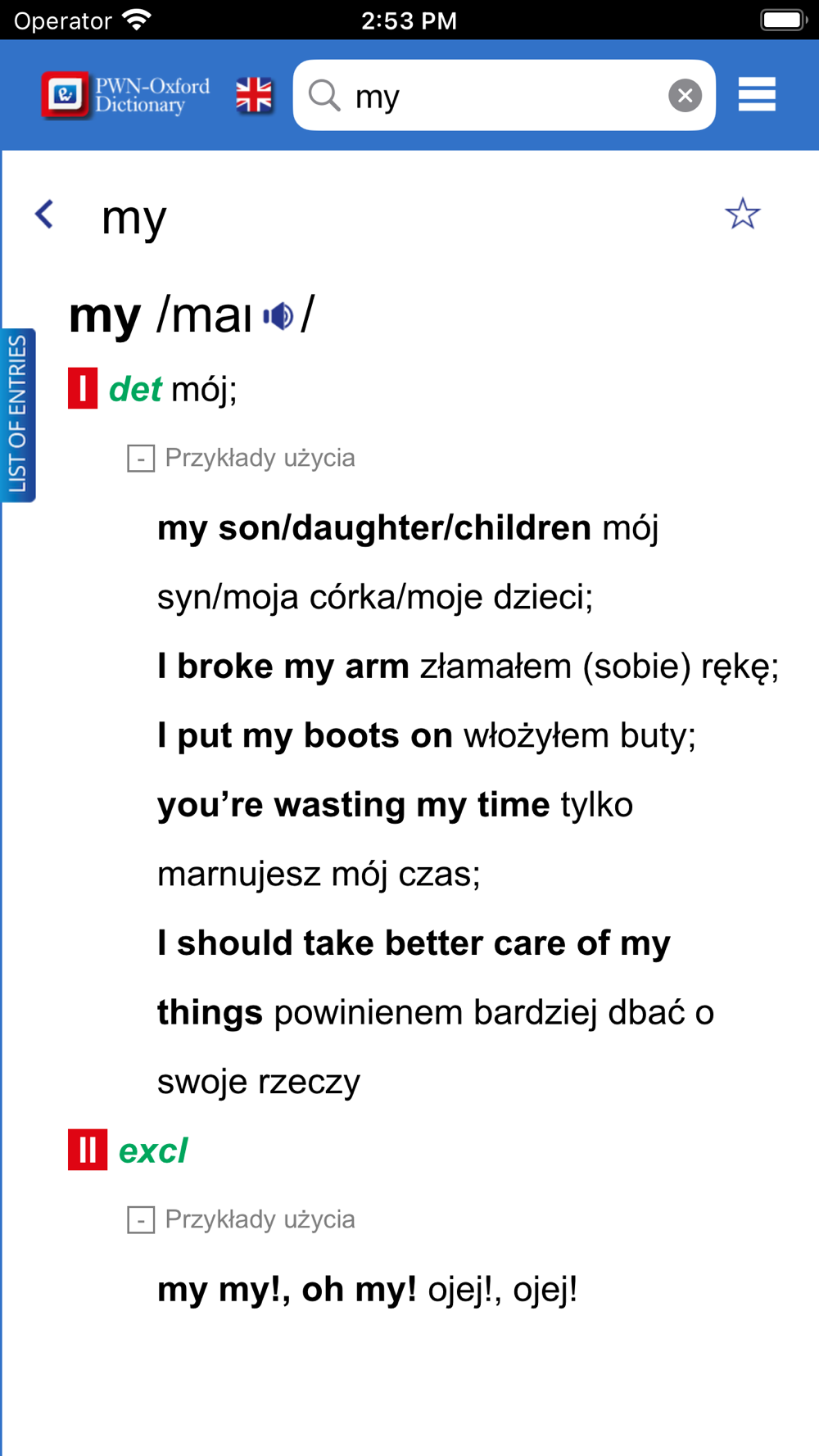 You can now have on your favourite device, always within arm’s reach (even when there are problems with Internet access, since the dictionary can be used offline – an Internet connection is required only for listening to pronunciation recordings), the best multimedia English-Polish/Polish-English dictionary, the PWN-Oxford, in the convenient form of a mobile app! It will provide invaluable assistance when working and travelling and excellent support in learning the English language.