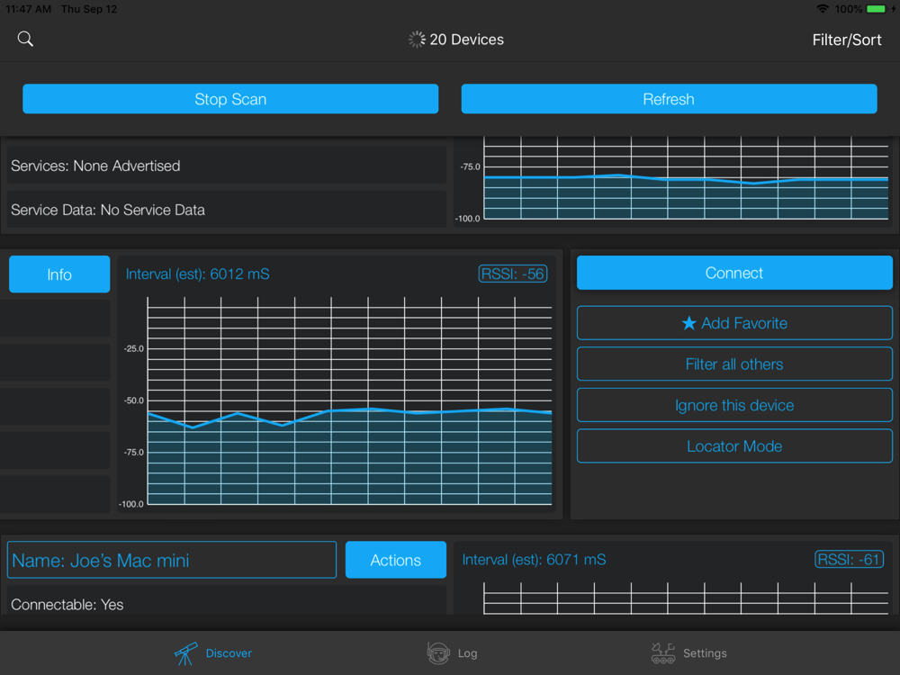 - Real-time RSSI plot for each discovered peripheral