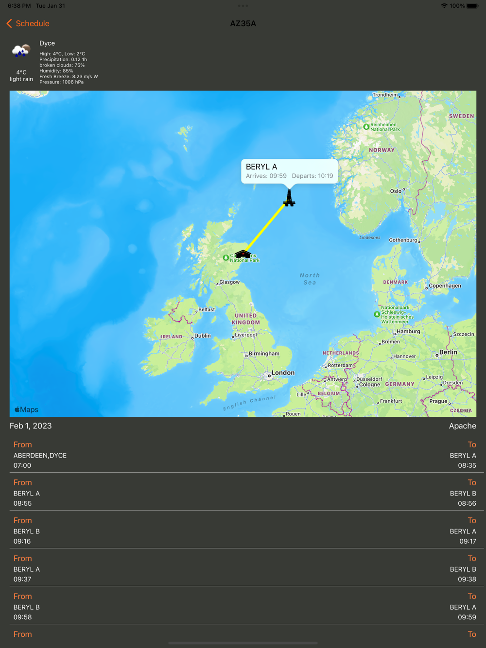 • Real-time arrival and departure times for all of our bases around the world