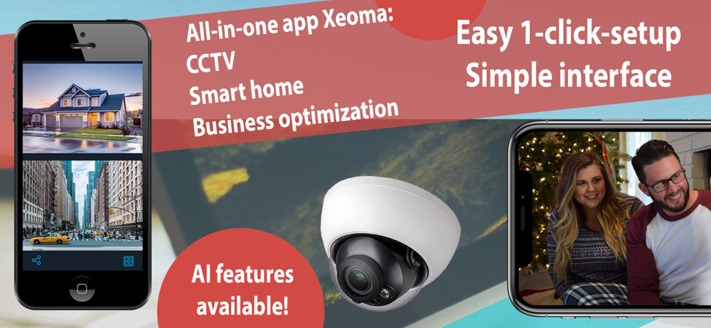 Easy and free app for video surveillance - viewing part ("client") for connection to your Xeoma Cloud account or your desktop ("server") part that has over 100 features including professional and artificial-intelligence-based ones like Recognition of Faces, License Plates, Emotions, Objects, Sounds, Loitering, Abandoned items and more.