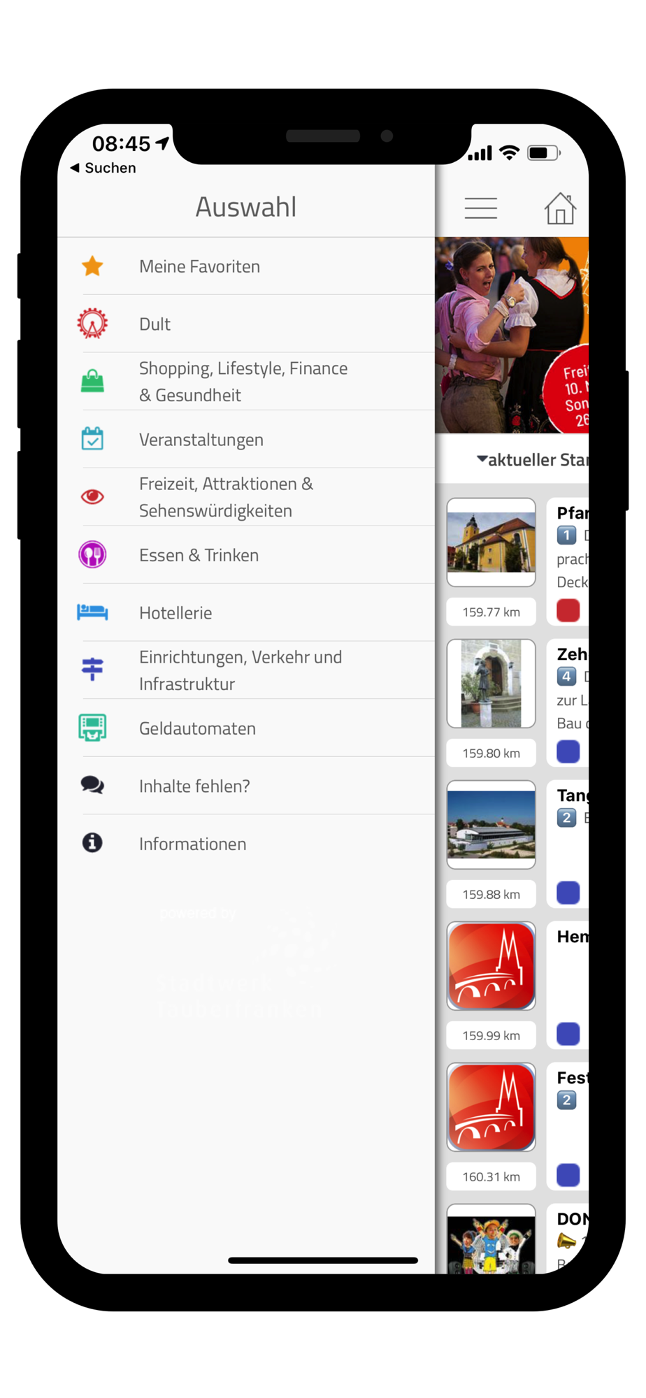 Best of here! And that's to be taken literally: All pieces of information are marked on a map with pins and sorted by distance in various lists.