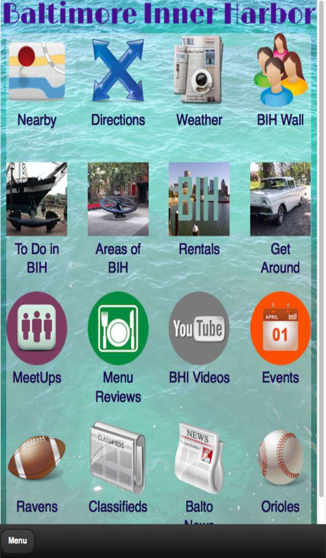 App’s features include information and resources on BIH's historical neighborhoods to the area’s major attractions to Baltimore’s world class museums to the diverse number of local meetup groups to the City’s major events and festivals to Information on getting around (Free BIH shuttle bus, light rail to BWI Airport or Amtrak, subway, MARC Train, Taxis, Cars) to the City's major sports teams to Local restaurant menus, reviews, and online reservations to Baltimore Inner Harbor Classifieds to Videos on Baltimore’s Inner Harbor, and more.
