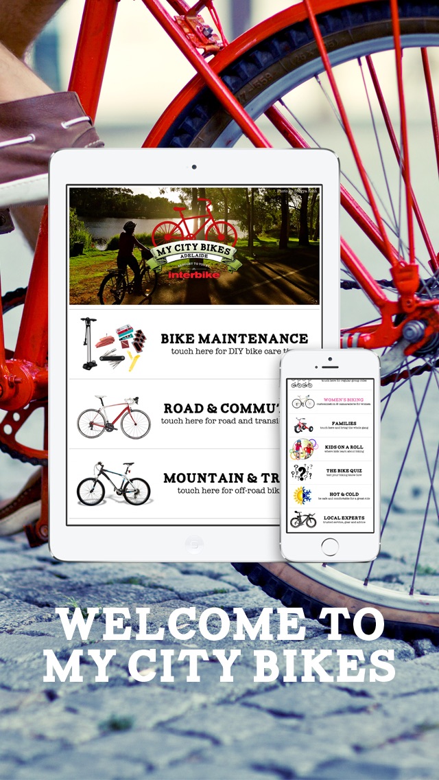 Daily fitness and wellness is as easy as riding a bike! My City Bikes Adelaide is a community resource for residents and visitors of Adelaide, SA, Australia to find local cycling routes for transportation, road biking, mountain biking and sightseeing. My City Bikes Adelaide encourages you to hop on a bike and ride for fitness, transportation or just plain fun with this pocket guide that will help you find just what you need to get on the bike. Make biking a part of your lifestyle to improve your overall health, the health of the community and the environment. Learn the basics of bikes and maintenance with advice from local beginner-friendly experts at Nat’s Outdoor Sports, and keep up on the latest local bicycle access and infrastructure. Understand the difference between road, mountain, commuter and cruiser bikes, pick your favorite and go for a ride!
