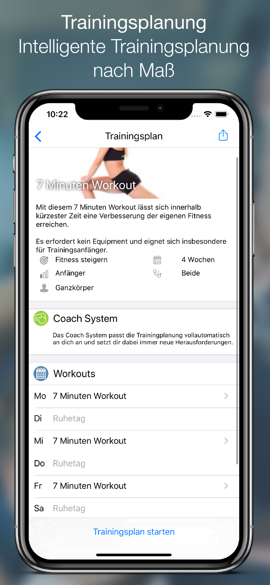 The app offers free individual training and diet programs.