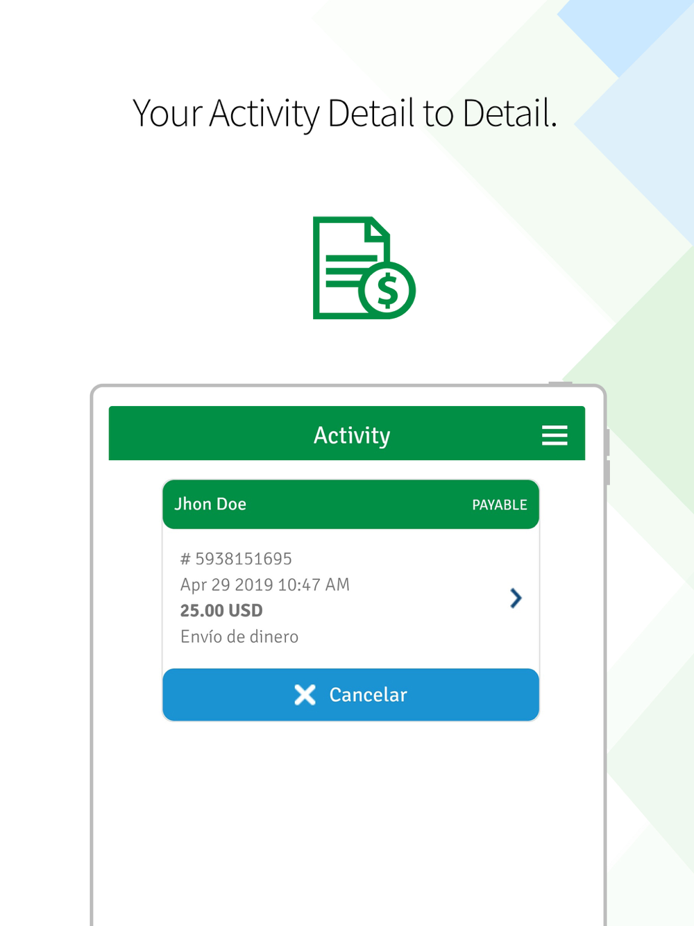 - Send recent transactions in just one step with the quick send option