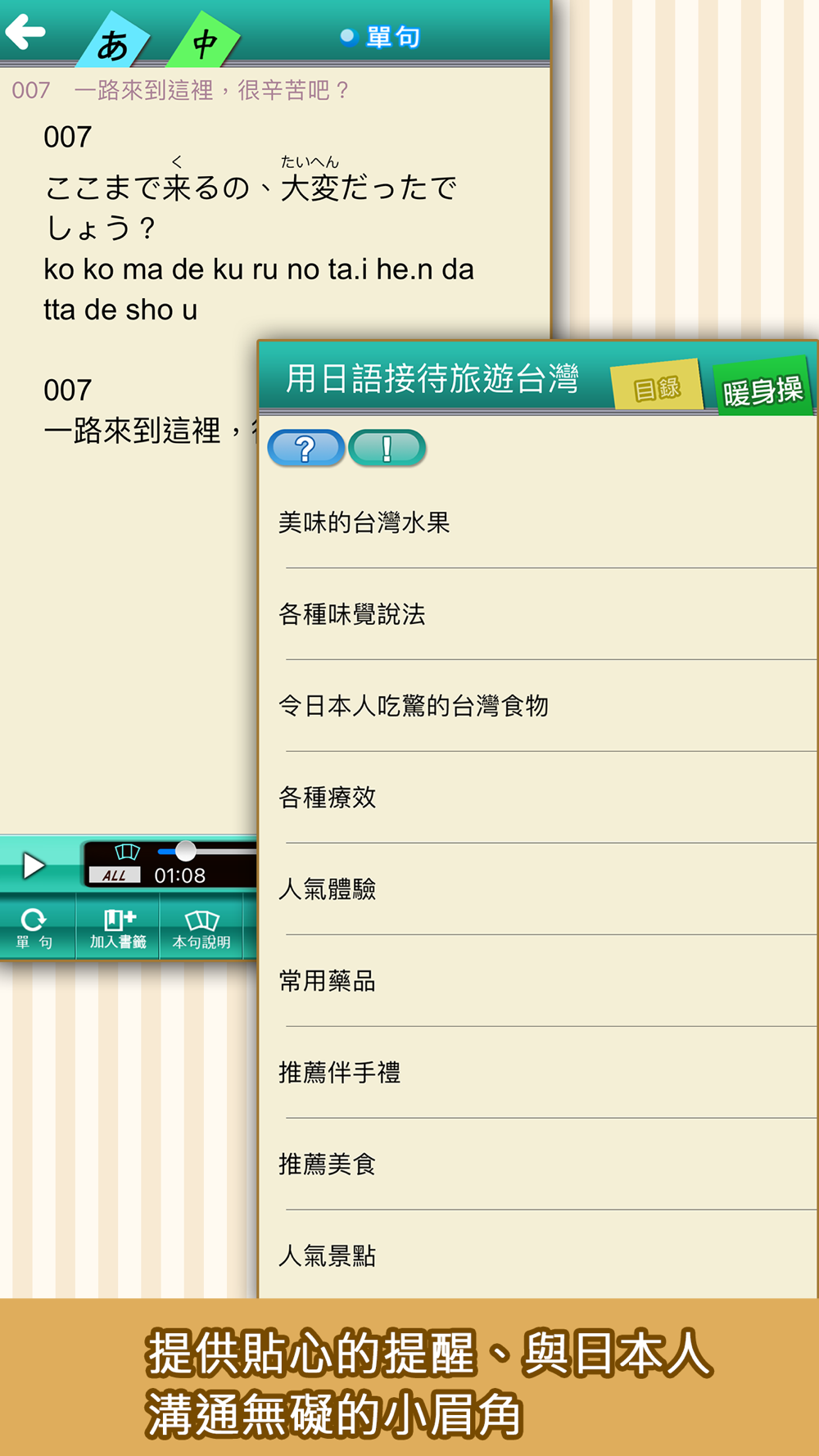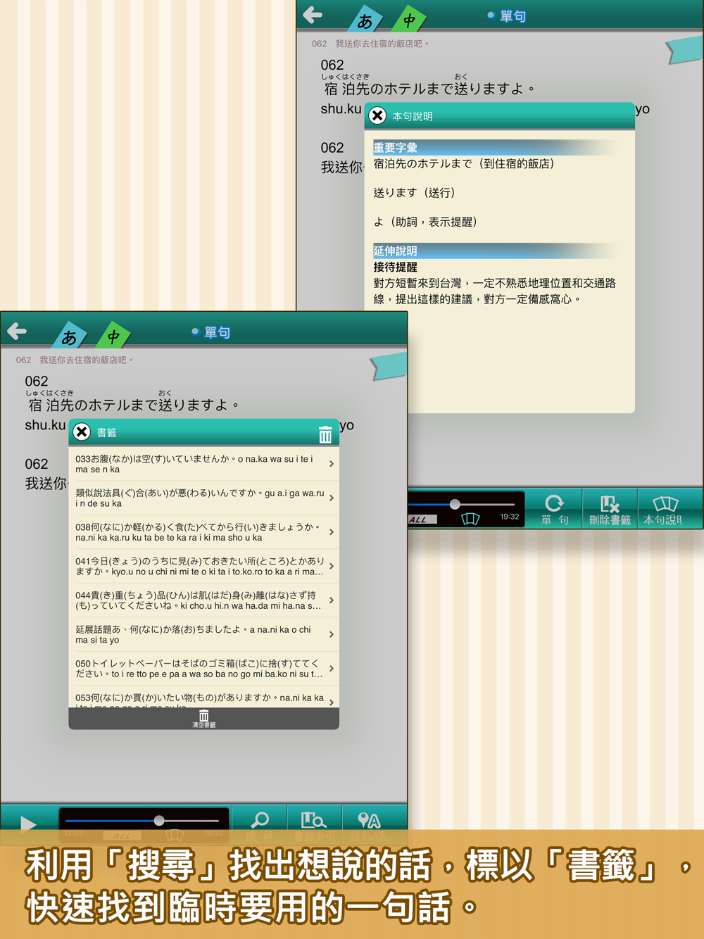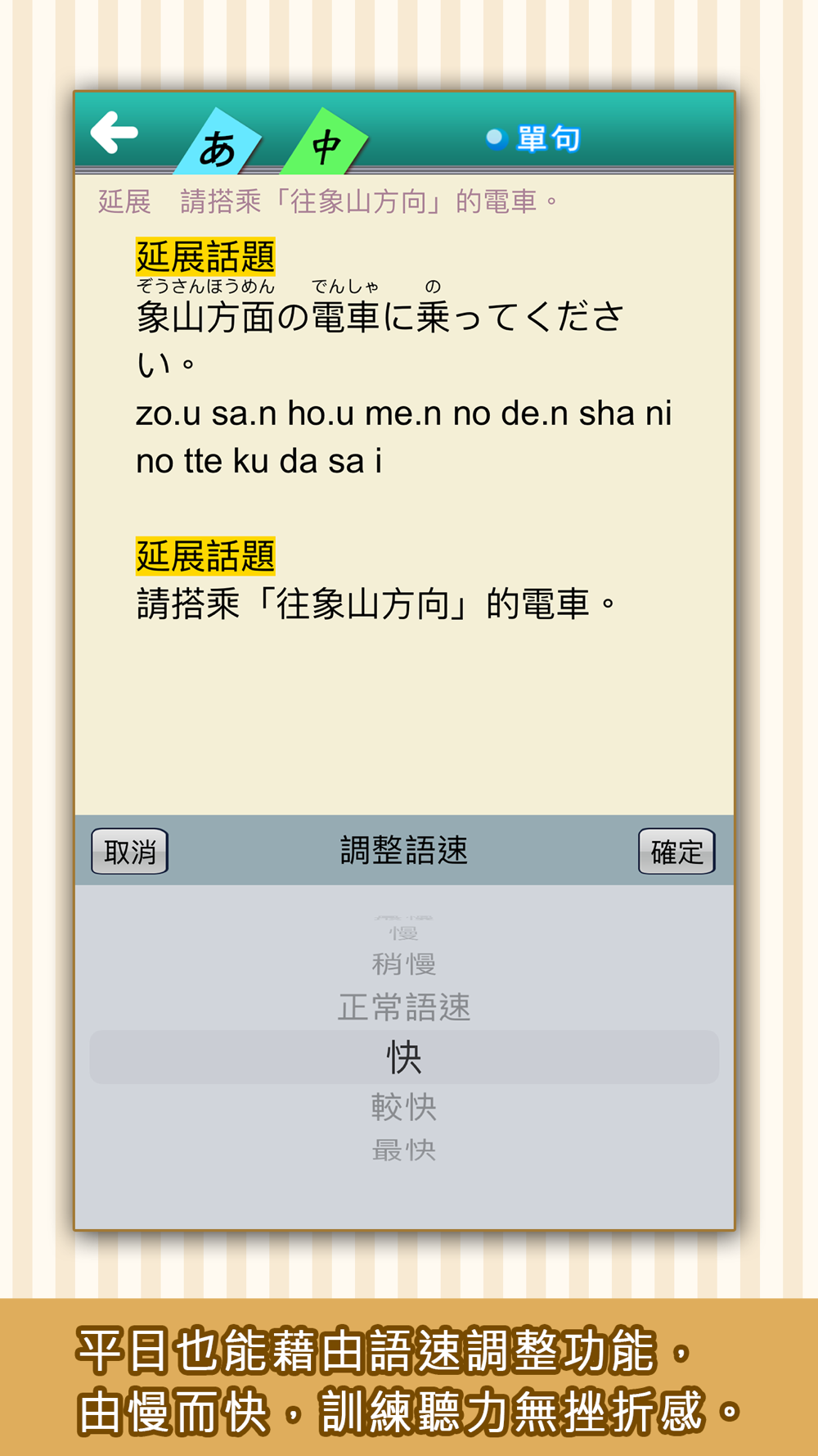 5. 中日對照:可設定中文或日文顯示,以訓練閱讀與理解能力。
