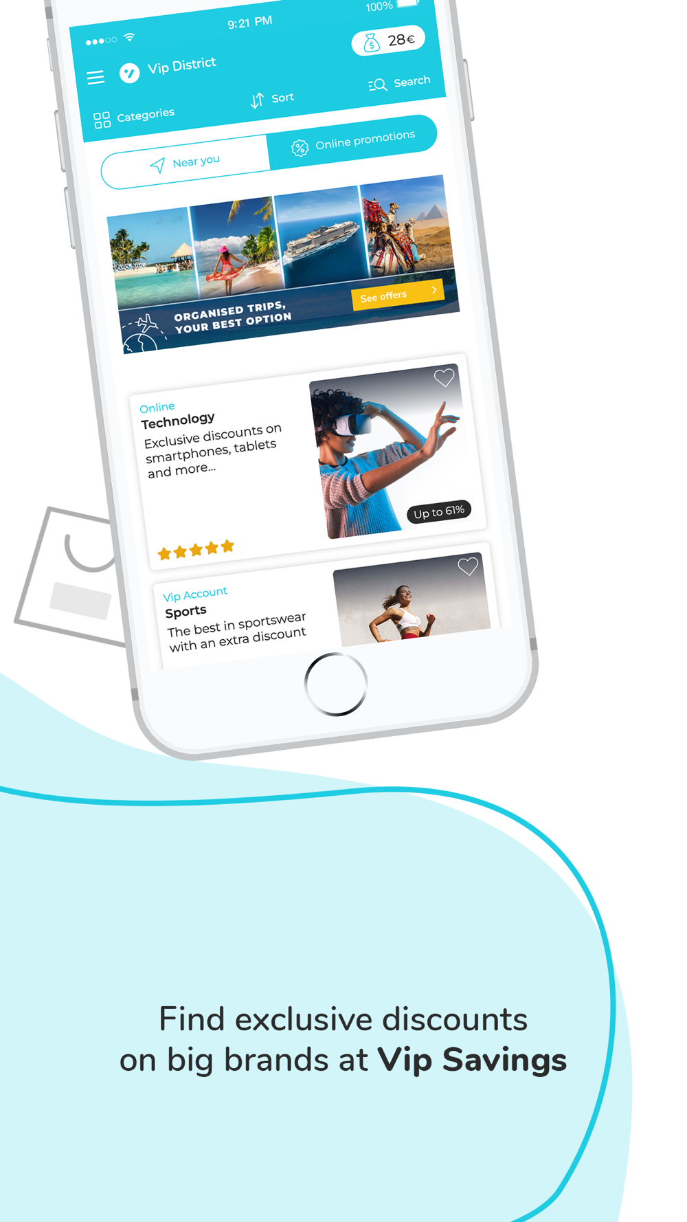 Vip District is the app where you can find benefits and advantages that are exclusive to you and members of your group, i.e. your company, your professional association or your favourite loyalty programme.