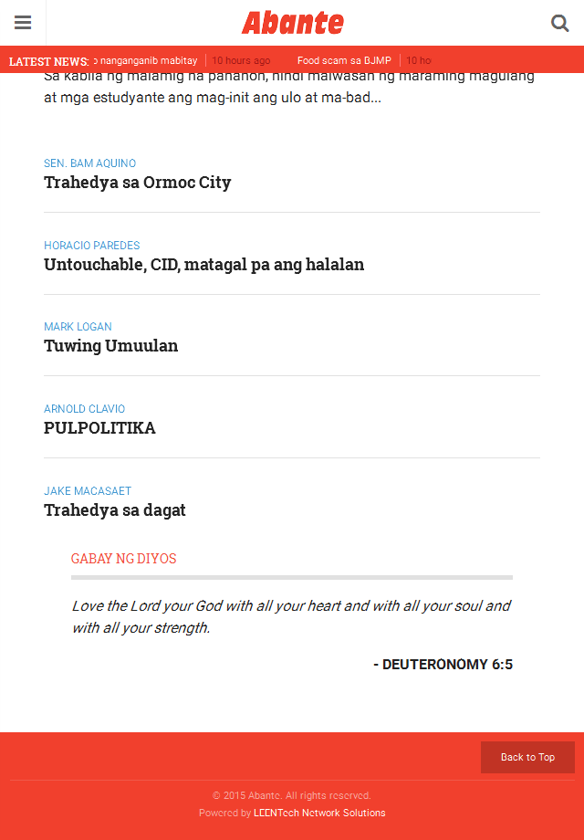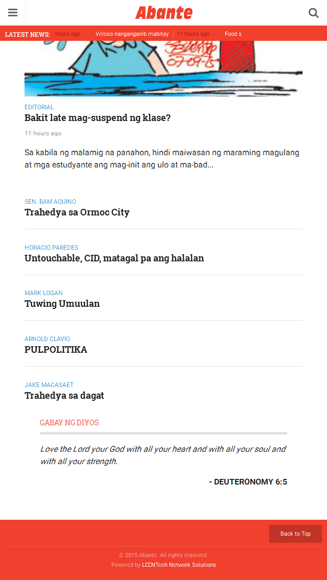 The leading and trend setting tabloid in the newspaper industry, ran by highly and technologically creative and innovative Filipino workers, committed and dedicated to serve it's readers by providing credible and accurate news reports and stories that will satisfy the newspaper buying public.