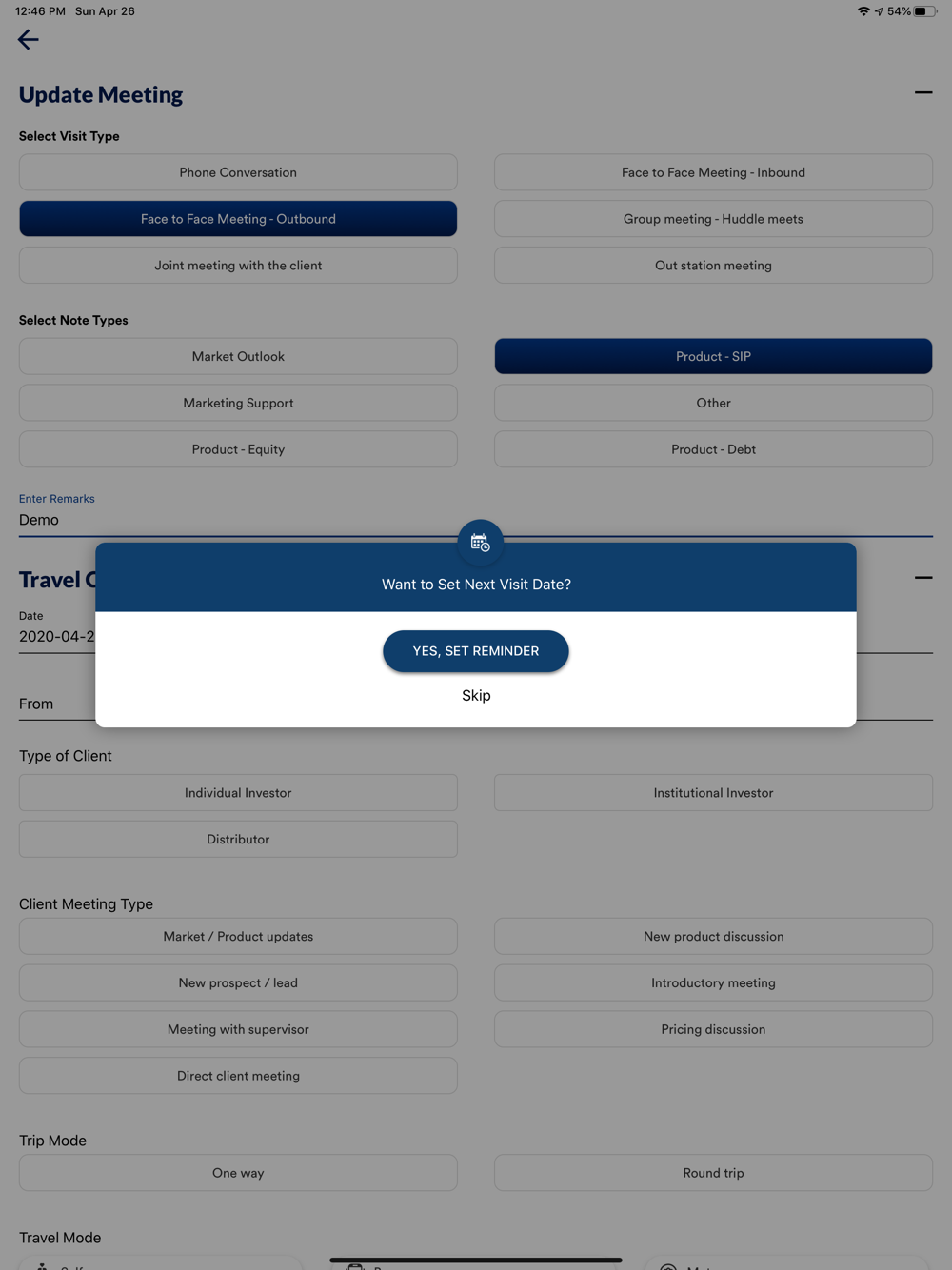 SalesGo Visits makes sales visits to key accounts, clients and distributors targeted and effective. Now deciding which account to visit and how many number of times to visit them will be simple and scientific. Allow the application to guide and ensure right meetings with the right accounts at the right times. Using an extremely simple UI the app is designed to help before, during and post the meeting in terms of accessing relevant information, adding tasks and recording minutes and notes.