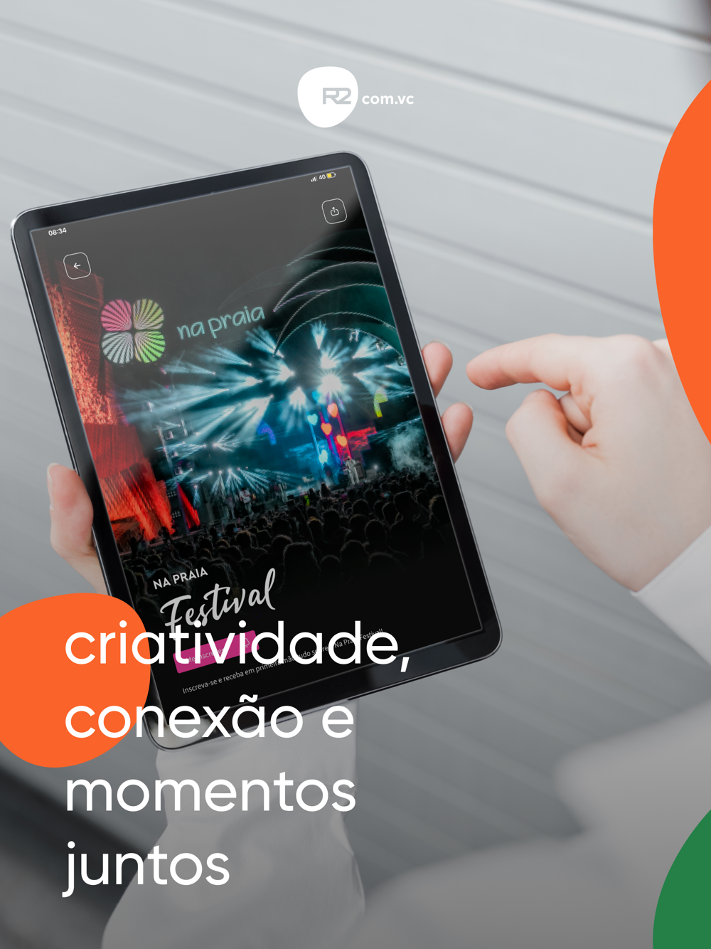 Com o app da R2 você pode comprar ingressos pra você e seus amigos de um jeito bem fácil e simples. Você também pode escolher o show de que mais gosta, conferir o line-up e tudo o que vai rolar nos eventos da R2.